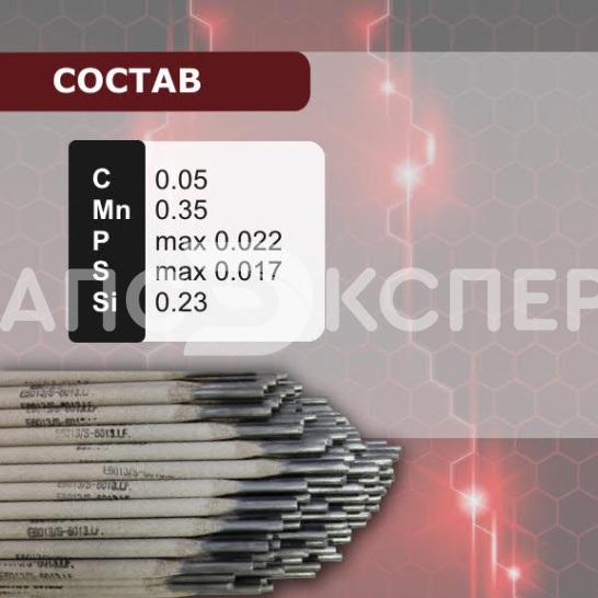 Универсальный электрод для сварки углеродистых и низколегированных сталей. Отличается высокой вязкостью металла шва, высокой скоростью сварки на вертикальной плоскости. Применение: S-6013.LF Используется для сварки стальных конструкций, машиностроении, мостостроении.